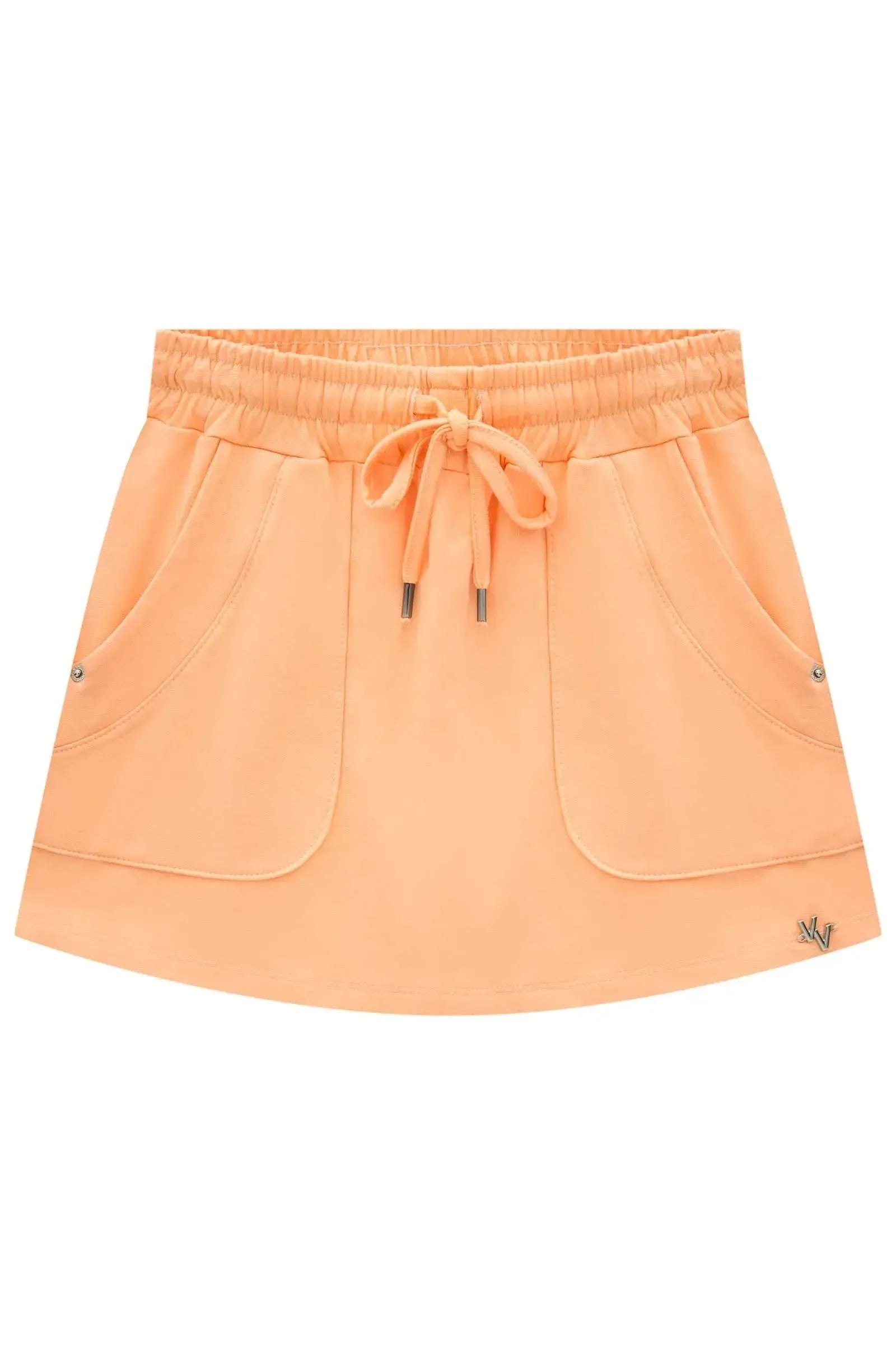O short saia em molevisco, é perfeito para as meninas que amam um look cheio de estilo e personalidade! Disponível em duas cores super estilosas - off white e laranja - ele oferece um toque super macio e confortável, ideal para o dia a dia e diversas ocasiões.