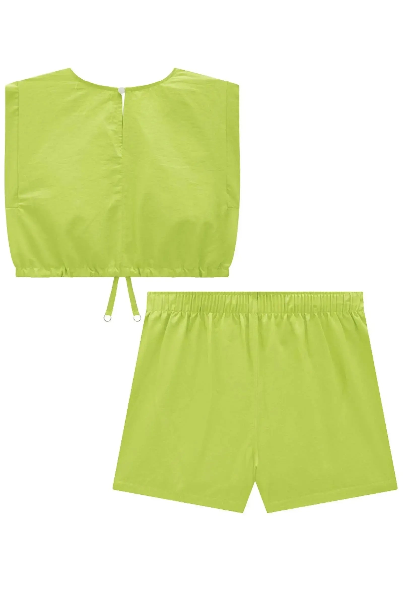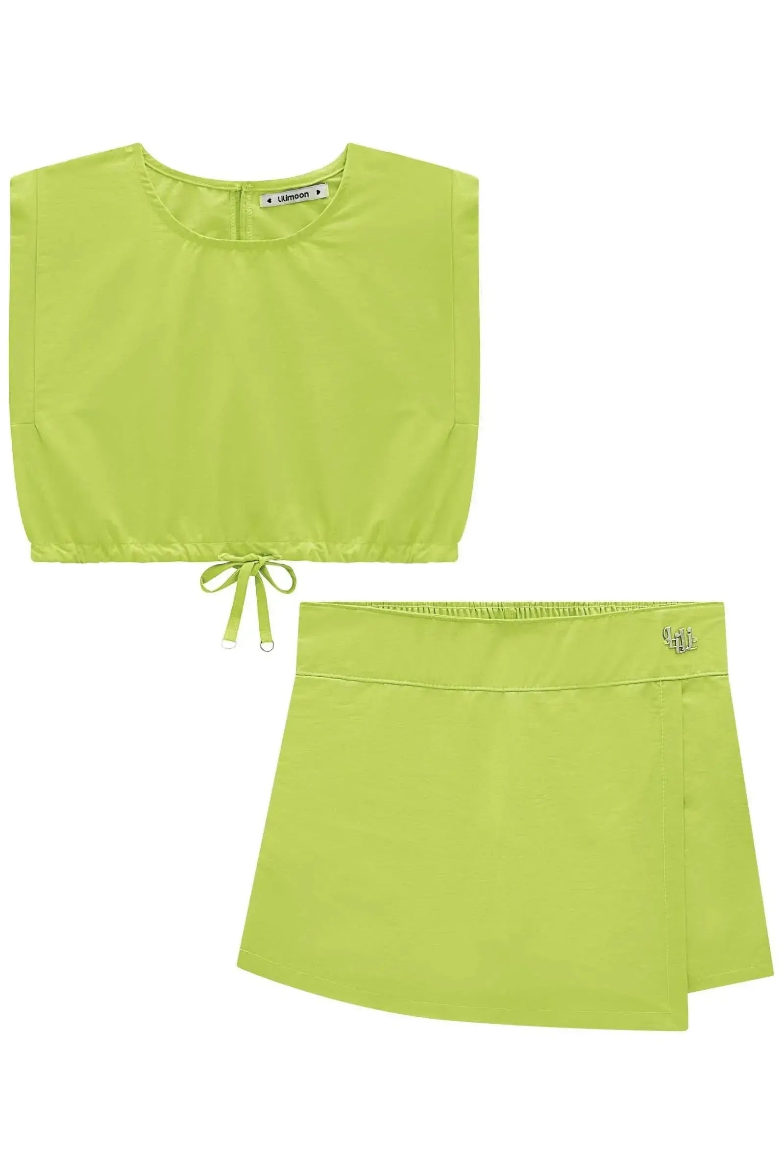 Conjunto de Blusa Cropped e Short Saia em Alfaiataria Amore 87499 Lilimoon Teen Menina