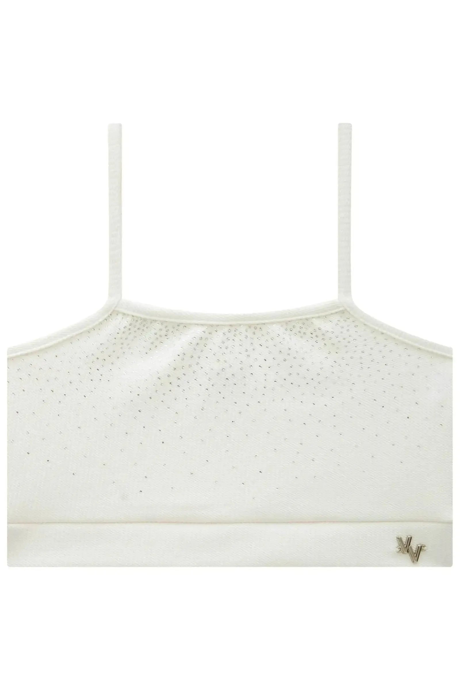 O top cropped em malha jacquard catarina, é uma peça delicada e cheia de charme, perfeita para as meninas que amam cores e brilho! disponível em duas cores super estilosas - off white e preto - ele oferece um toque super macio e confortável, ideal para o dia a dia e para manter a pele fresquinha! O brilho em foil, adiciona um charme especial à peça.
